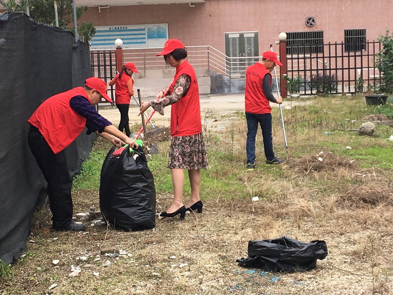 活動于14:30分開始,志愿者們穿上“紅馬甲”,拿起掃帚、鐵鏟等工具,大家分工協(xié)作,有的扒雜草、有的掃垃圾、有的撿泡沫垃圾、有的負責垃圾裝袋……經(jīng)過2個鐘頭的埋頭苦干,空地面貌煥然一新,衛(wèi)生環(huán)境得到明顯改善。