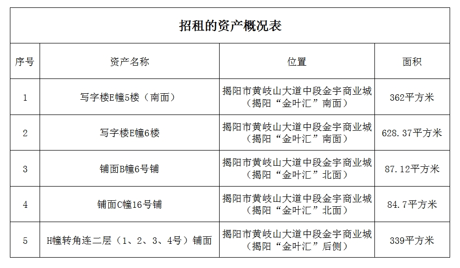 一、目前招租的資產(chǎn)概況如下: